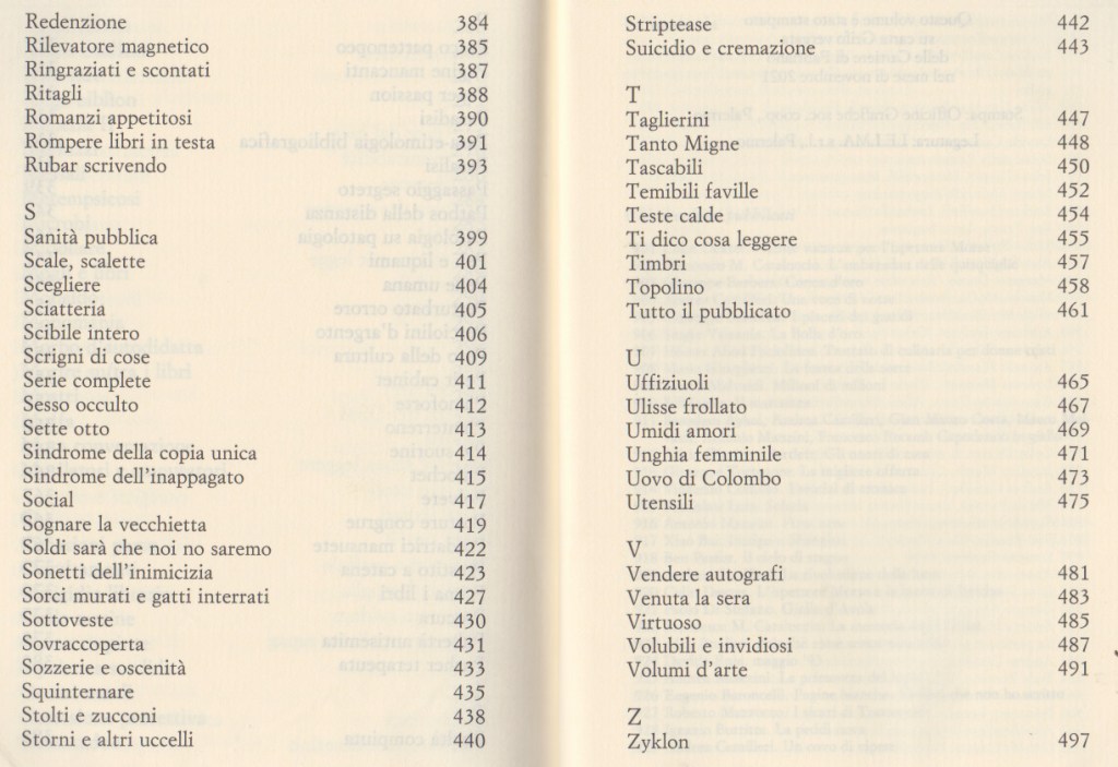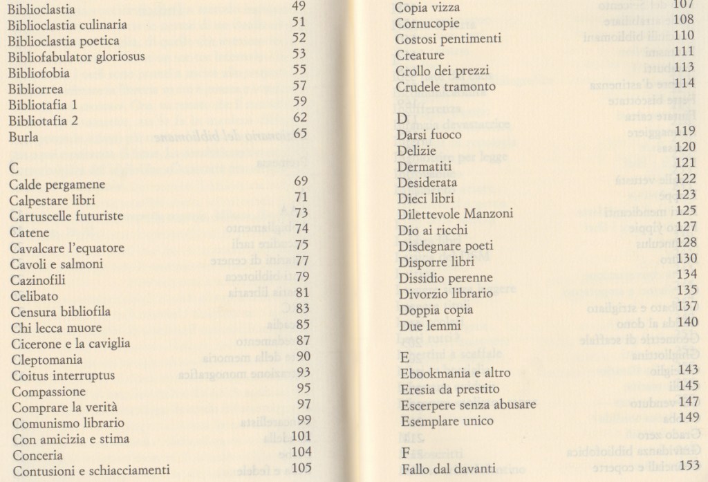 CASTRONUOVO Antonio, Dizionario del bibliomane, Sellerio, 2021. Indice del libro