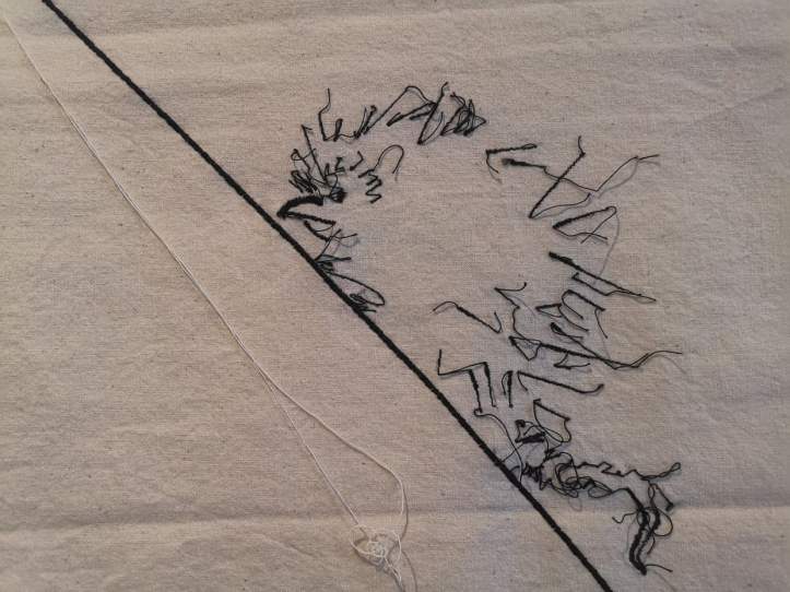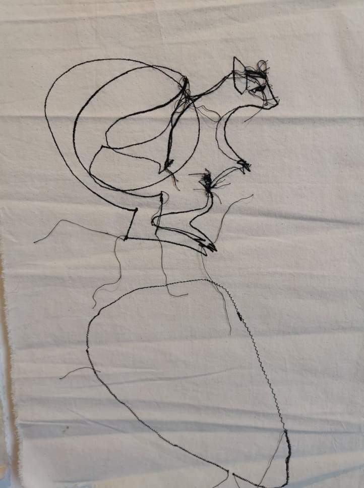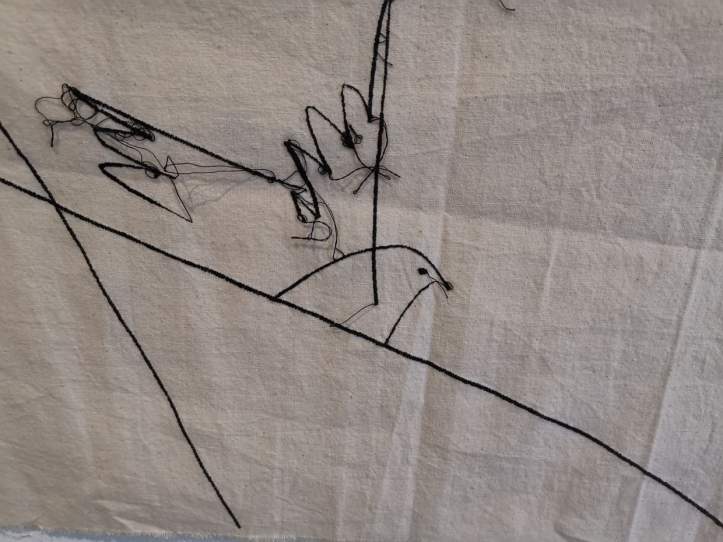 Me l’aveva segnalata una mia amica innamorata di quest’artista sarda e così ieri sono andata con lei a milano a vedere un’inedito della Lai “Legarsi alle montagne” nonchè l’illustrazione cucita di una fiaba.