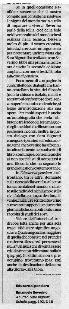1 commento su “Armando Torno, Alla ricerca della verità e del senso del mondo. Presentazione della nuova edizione di: Educare il pensiero, Emanuele Severino , a cura di Sara Bignotti, Scholè, 2022”