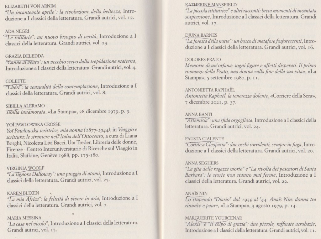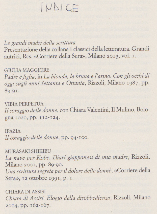 Maraini Dacia, Scritture segrete. Le donne che hanno cambiato il mondo con la parola, Rizzoli, 2025. Indice delle autrici presentate nel libro