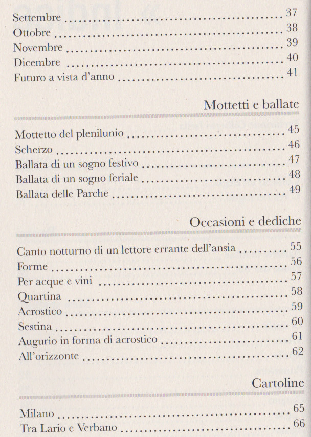GUARRACINO Vincenzo, prefazione di Gilberto Isella, Oroscopi e altri versi, La Valle del Tempo editore, Napoli, 2024. Indice del libro