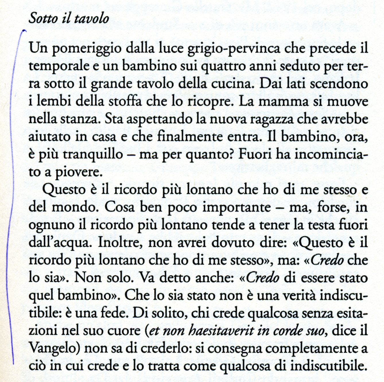 “A essere sincero, una volta, quando ero in terza media, sono venuto a trovarti. Provavo un senso di solitudine insopportabile,” le dissi. “Avevo cercato di telefonarti, ma il numero era cambiato. Allora presi il treno e venni fino a casa tua, ma sulla targhetta del tuo portone c’era un altro nome.”