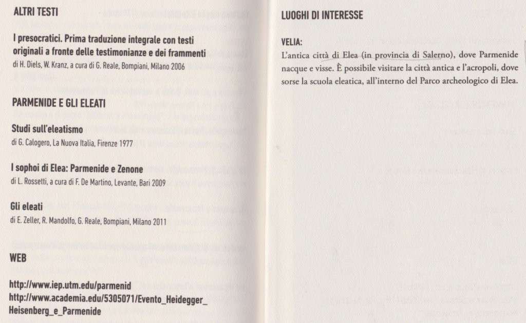 28-32. : è sintetizzato in questi versi il “programma” del poema, che consiste nell’apprendimento di un “sapere” capace di far distinguere l’eidòs phòs, “l’uomo che sa”, dalla massa dei mortali: un sapere della Totalità, capace di coniugare la Verità dell’Essere, perfetta, senza contraddizioni o manchevolezze (“il cuore saldo della rotonda Verità”), con il campo delle esperienze umane (tà dokoúnta), il mondo cioè della del “sapere comune”, (“la verità dell’apparire”, fondata sui sensi, cfr.Ruggiu, 1991, p.200), per giungere insomma alla consapevolezza che “le cose che appaiono, i fenomeni, sono il suo manifestarsi nei suoi contenuti” (cfr.Reale, 1991, p.14).