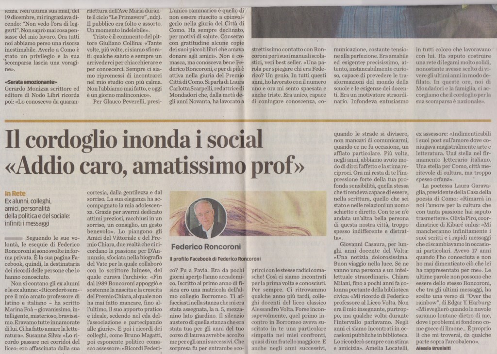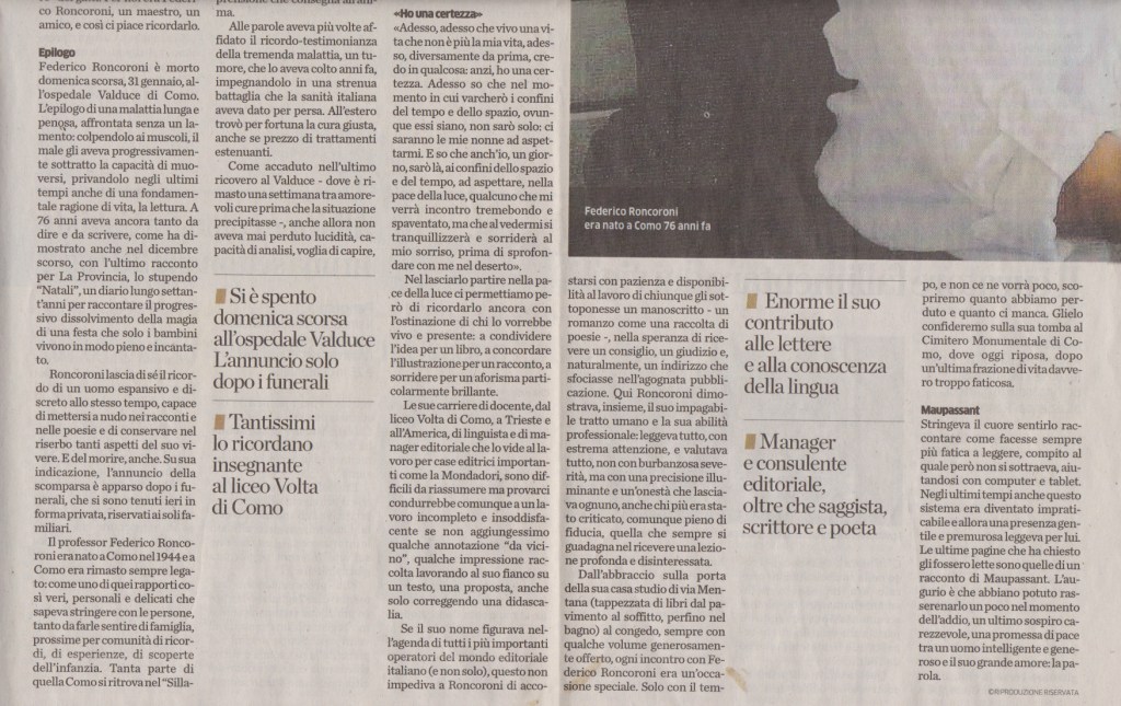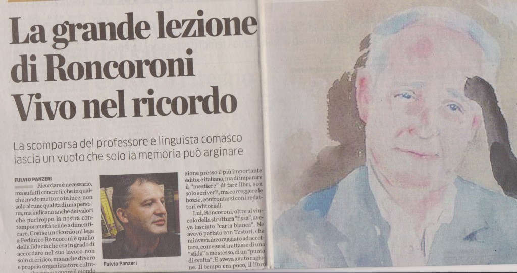 Si è spento domenica scorsa, a Como, Federico Roncoroni. Intellettuale, scrittore, linguista di chiara fama.