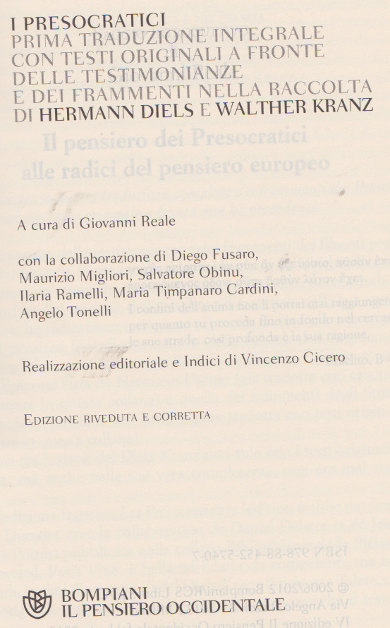 Note sulla dialettica in Eraclito, in La persona e i nomi dell’essere, Scritti di filosofia in onore di V. Melchiorre, 2 vv., Vita e Pensiero, Milano 2002, v. II p. 721-738.