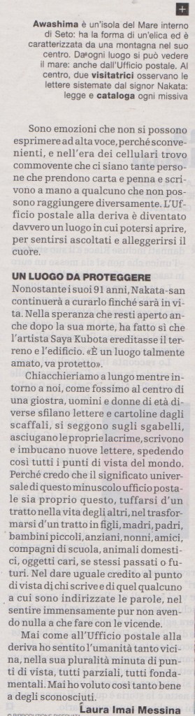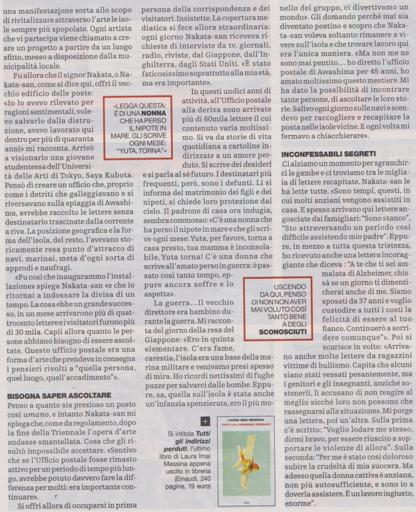 “Due anni dopo il tuo trasferimento, andammo ad abita­re a Fujisawa, vicino a Enojima, dove mio padre era stato mandato per lavoro. Da allora ho vissuto sempre lì, fino a quando non ho cominciato l’università. Dopo essermi tra­sferita, ti ho scritto una cartolina con il nuovo indirizzo. Non ti è arrivata?”