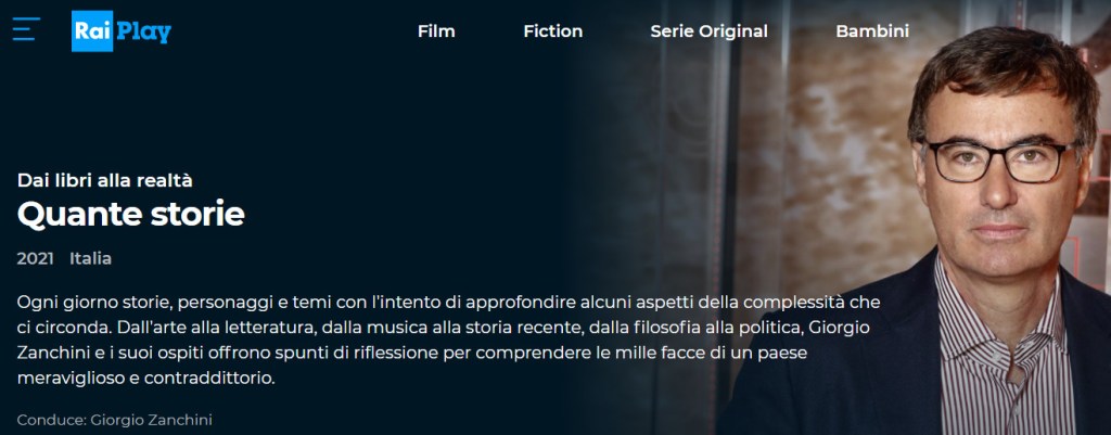 Quante storie: dai libri alla realtà, a cura di Giorgio Zanchini e Emilia Zazza, Rai3 – RaiPlay