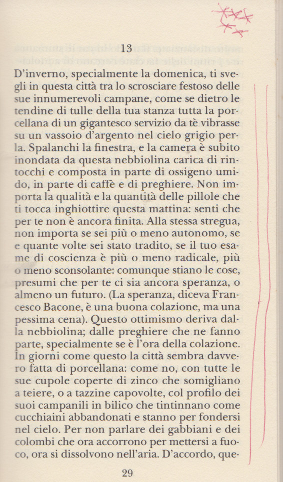 Che tutto scivolava via come una forte pioggia lo sperimentarono più a fondo coloro che sopravvissero al Terzo Reich ed ebbero tempo di vedere chiaro in sé stessi. Al più tardi lo compresero il giorno in cui per la prima volta si accorsero di invecchiare. Si invecchia male in esilio. Perché l’uomo ha bisogno di Heimat. Di quanta? Era una domanda fasulla, s’intende, utile solamente per intitolare un capitolo e forse nemmeno la più indovinata. Il bisogno di Heimat dell’uomo non è quantificabile. Eppure, proprio in questi giorni in cui la Heimat perde molto della propria reputazione, si è tentati di fornire una risposta a questa domanda puramente retorica e di dire: ha bisogno di molta Heimat, e in ogni caso più di quanto possa immaginare un mondo composto da persone che posseggono una Heimat, il cui orgoglio maggiore è però una vacanza all’insegna del cosmopolitismo. E’ necessario difendersi da una inammissibile esasperazione passionale che condurrebbe fuori della sfera riflessiva nel sentimentale. Pensiamo a Nietzsche, alle sue cornacchie che gridano e tra un frullo d’ali a stormo volano alla città, e alla neve invernale che minaccia il solitario. “Weh dem, der keine Heimat hat!” [misero chi non ha un focolare], dice la poesia. Non si vuole apparire troppo esaltati, e si rimuovono le reminiscenze liriche. Resta la più banale delle constatazioni: non è bene non avere una Heimat.