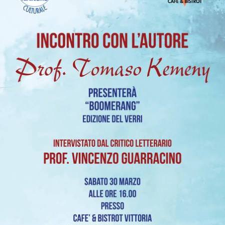 TOMASO KEMENY, con VINCENZO GUARRACINO, ha presentato il libro BOOMERANG, edizioni del Verri. Al caffè Bistrot di Piazza Vittoria, Como, 30 marzo 2019. Con una videoscheda di Roberto Caracci