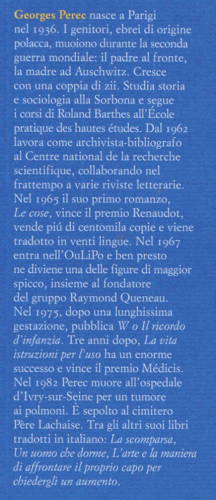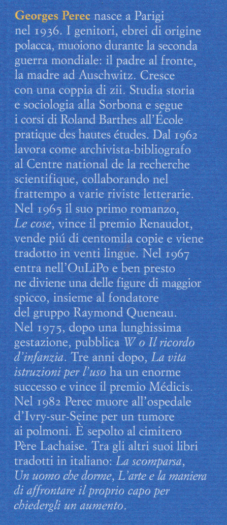 PEREC GEORGES, W o il ricordo d’infanzia (1975), Einaudi, 2018 | recensione in Doppiozero